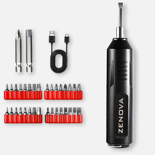 33-Piece ZENOVA Electric Screwdriver , 360 RPM, Reversible Cordless, 1200mAh Rechargeable with USB Charging